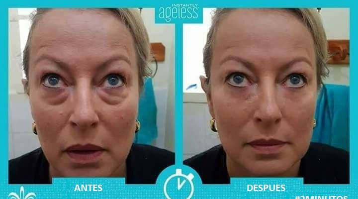 En tan solo dos minutos, Instantly Ageless reduce la aparición de las bolsas inferiores de los ojos, las finas líneas de expresión, las arrugas y los poros, y su efecto dura de 6 a 9 horas.